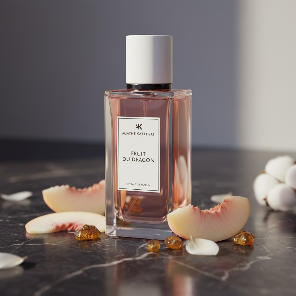 Fleur de coton et pêche blanche fondent sur la peau, enrobées d'un souffle exotique et la vanille douce laissent un sillage chaud, presque sucré.